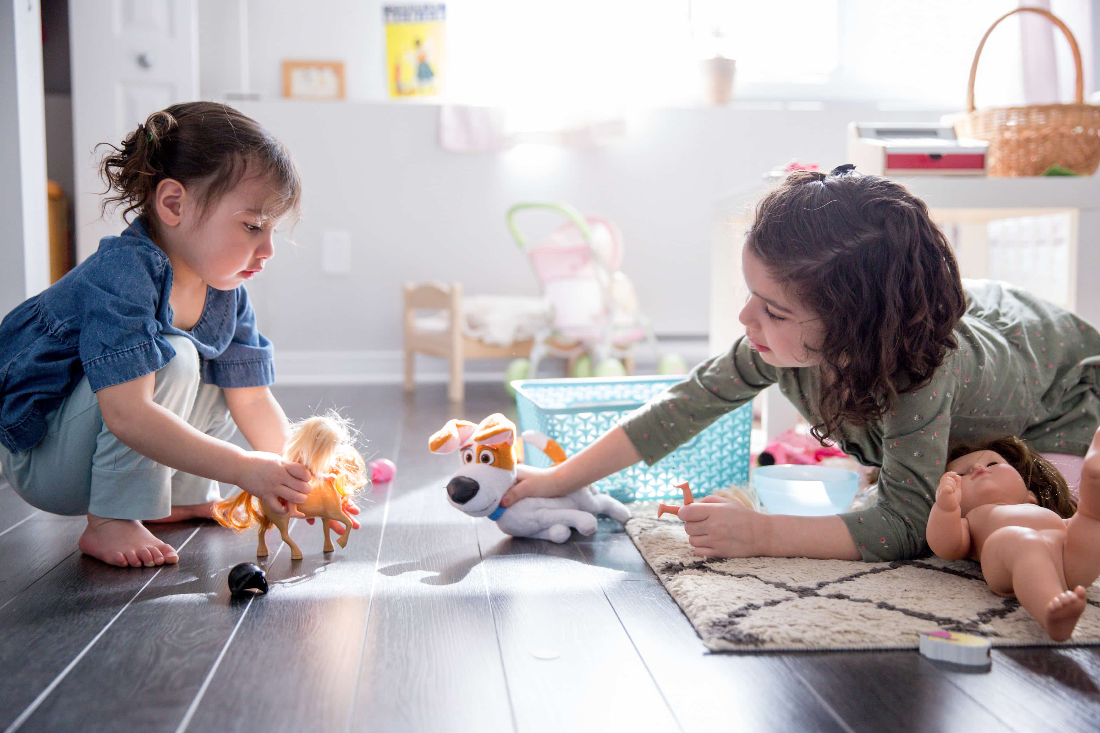 - Sitting together playing with their favorite toy or game